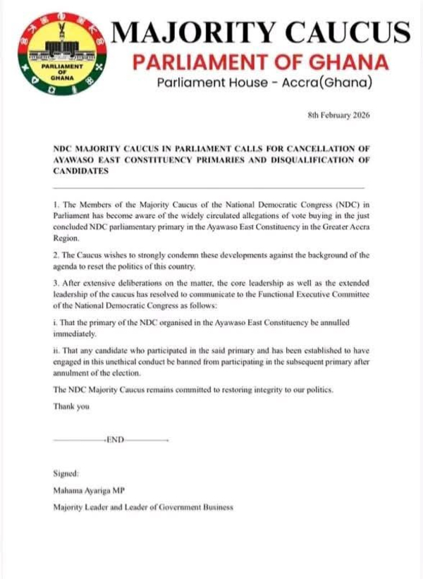ACCRA – Controversy continues to swirl around the Ayawaso East NDC parliamentary primaries as it emerges which party MPs officially approved the call for cancellation of the hotly contested elections.