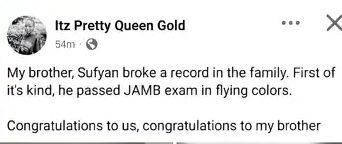 Social media has erupted in excitement after a young lady proudly showcased her younger brother’s performance in the 2026 Unified Tertiary Matriculation Examination (UTME), with what she described as a “record-breaking” aggregate score sparking massive buzz online.