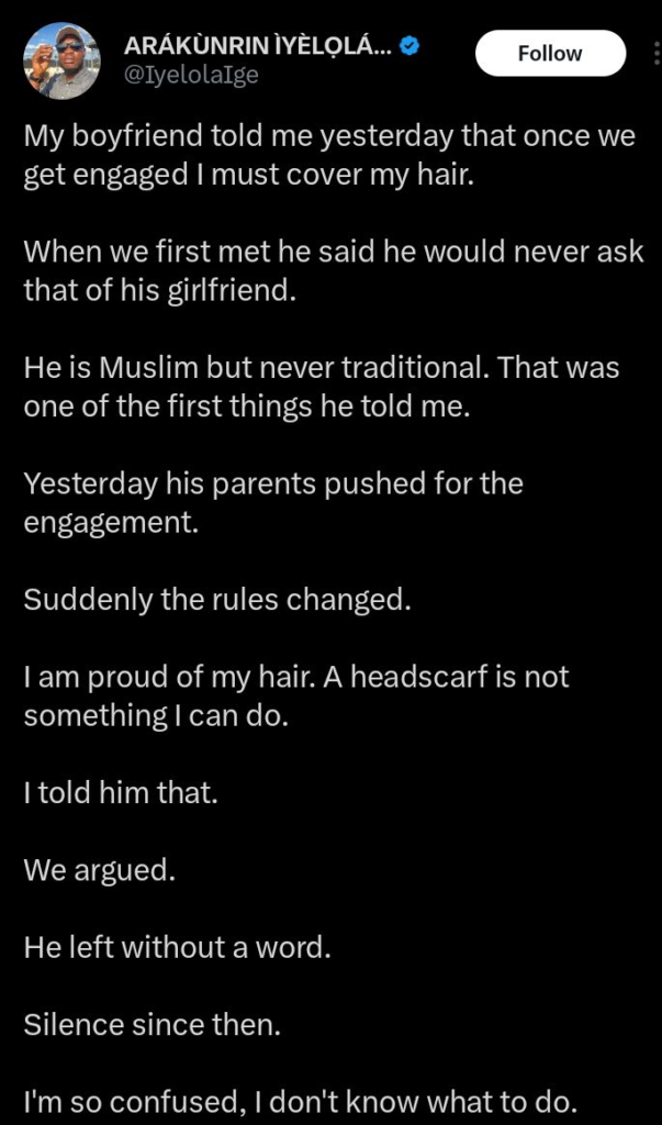 According to her account, what began as a loving and stable relationship allegedly shifted dramatically once family pressure for marriage entered the picture. She claims her boyfriend’s behaviour, tone, and expectations changed almost overnight, leaving her confused and emotionally drained.