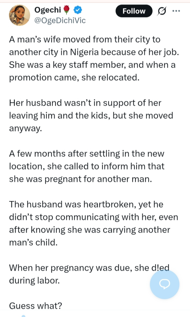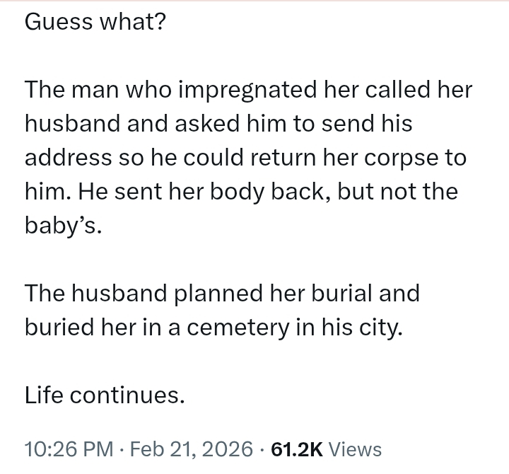 Social media reactions have poured in, with some expressing sympathy for the husband’s loss, while others reflect on the tragic chain of events that led to her untimely death. The story has sparked broader conversations about the impact of infidelity on mental and physical health.