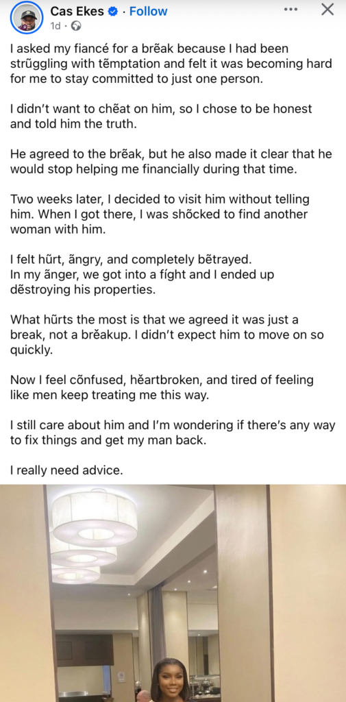 What began as a plea for space in a relationship has now turned into a painful nightmare for this bride-to-be. The couple, who had been planning a future together, found themselves at a crossroads when she requested a temporary break to focus on herself and her personal growth. But her fiancé, shocked and blindsided, took it to mean the end of their engagement.