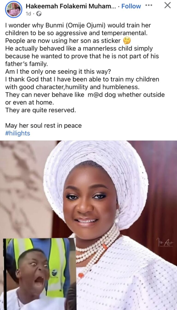 A heated online controversy has erupted after a lady publicly reacted to a viral video showing Omije Ojumi’s son at a burial ceremony, describing the child’s behavior as “mannerless.” Her comment has triggered intense backlash, moral debates, and emotional reactions across social media.