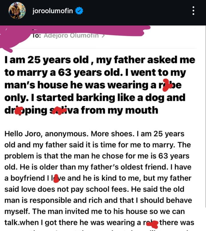 A woman has sent shockwaves across social media after recounting a disturbing and emotional experience in which her father allegedly attempted to force her into marriage with a 63-year-old man—a proposal she says left her terrified, humiliated, and desperate.