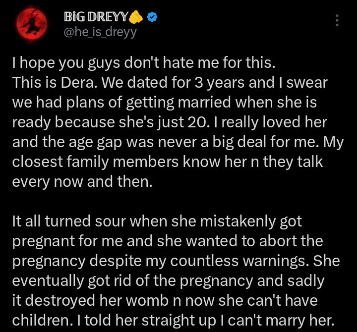 In a heartbreaking and controversial revelation, a man has openly confessed that he refused to marry his girlfriend after she suffered the loss of her womb following a medical abortion.