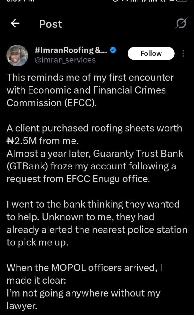 A Nigerian man has sent social media into a frenzy after revealing how he was reportedly invited for questioning by the Economic and Financial Crimes Commission (EFCC) shortly after ₦2.5 million unexpectedly landed in his bank account.