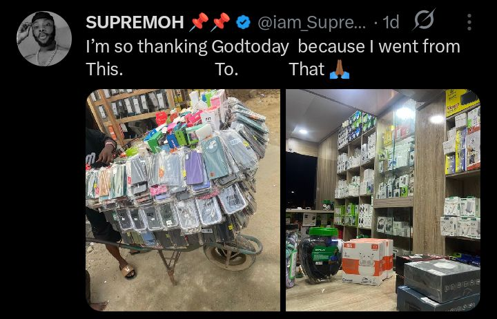 The post featured a contrast between his past life on the streets and his present reality as a thriving shop owner, drawing admiration from social media users who praised his resilience and determination.
