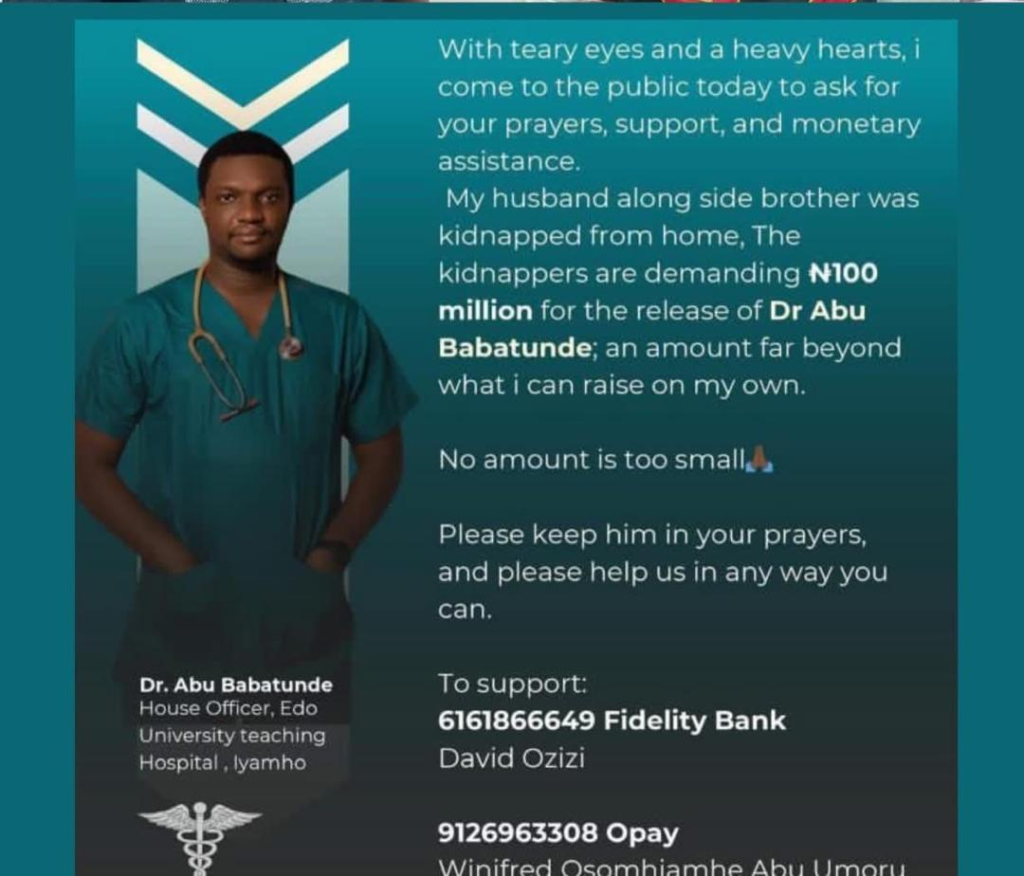 The Edo doctor, though shaken, is reportedly safe and receiving care. Police are urging anyone with information to assist as they unravel the full network behind the crime.