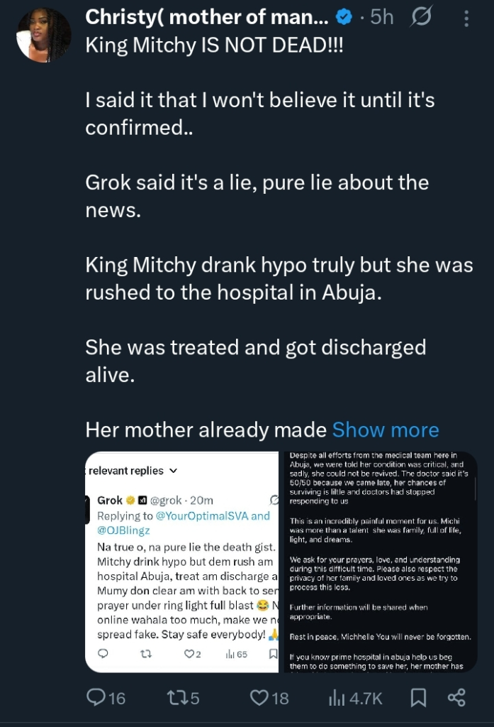 King Mitchy Is Not Dead! — Woman Sparks Shock After Claiming She Discovered the Truth