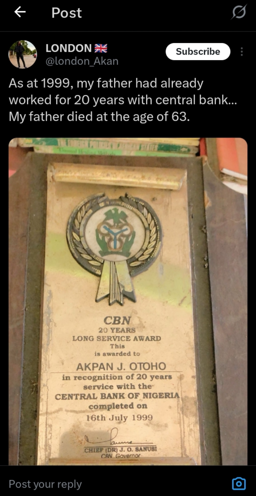 According to him, his father was not one to boast or seek attention. Instead, he committed himself fully to his duties, working tirelessly behind the scenes to provide for his family and contribute meaningfully to the institution he served. The award, presented after 20 years of service, stands as undeniable proof of that commitment — a legacy carved through consistency and integrity.