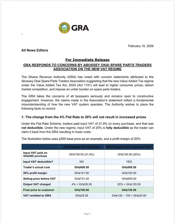 The Ghana Revenue Authority (GRA) has launched an official guide to the new VAT regime, clarifying how the changes will affect prices, businesses, and everyday shoppers.