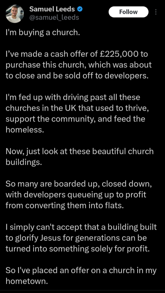 Sources indicate that the church, known for its strong presence in the area and large congregation, could soon change ownership if the deal is finalized. While the exact reasons behind the potential sale remain unclear, reports suggest the property itself — including the land and structures — may be the primary target of the purchase.