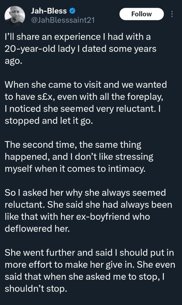 In a jaw-dropping revelation that has left social media buzzing, one man has come forward to share his shocking ordeal with a woman who continuously denied him intimacy, despite clear requests for consent.
