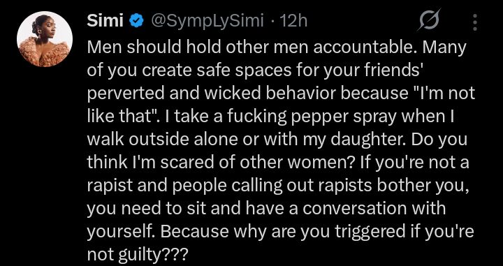 As the pressure builds on men to do more in this ongoing battle, Simi’s words are a fierce reminder that accountability is not just a choice—it’s a responsibility. Will this be the spark that lights a fire under the broader conversation about sexual violence, or will it fade into the background?