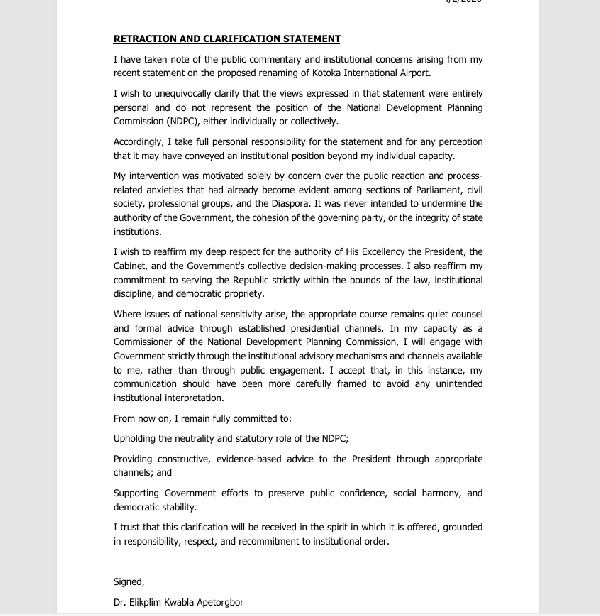 In a stunning reversal that has tongues wagging across the nation, Dr. Elikplim Apetorgbor has officially retracted his controversial statements about renaming the airport. The bold remarks, which had sparked heated debates and social media storms, are now being walked back, leaving many wondering what prompted the sudden change of heart.